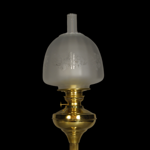 A frosted etched beehive oil lamp shade decorated with foliate design